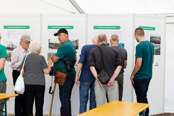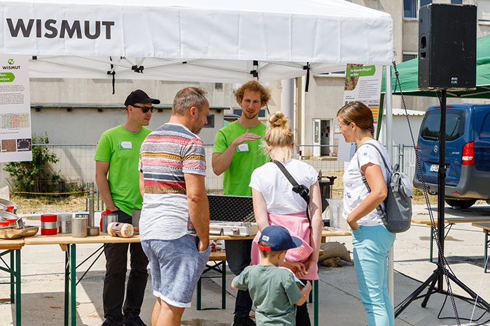 News Der Besucherstrom riss am vergangenen Samstag nicht ab. Lange vor der Eröffnung war der Festplatz an der Wasserbehandlungsanlage in Helmsdorf gut gefüllt. Der Besucherandrang war enorm: die Öffentlichkeit hatte zum ersten Mal die Möglichkeit, die industrielle Absetzanlage in Helmsdorf zu begutachten. 14 Informationsstände, eine Ausstellung zum Standort Crossen/Helmsdorf und dessen Sanierung, Führungen in der neuen Wasserbehandlung, Demonstrationen mit der Bohrtechnik, zum Monitoring und Strahlenschutz sowie Technikausstellung auf dem Gelände boten ein abwechslungsreiches, informatives Programm an diesem Tag.