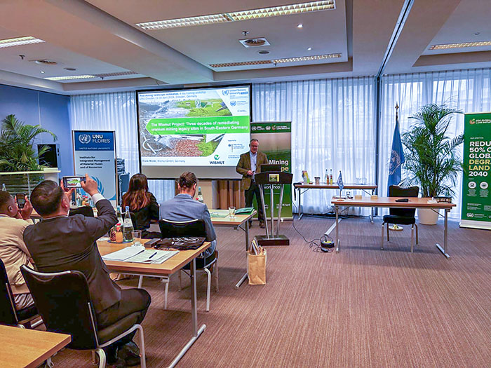 NewsMitte April 2024 hat sich die Wismut GmbH an einer internationalen Weiterbildungsmaßnahme zur „Post-Mining Landscape Restoration“ (Wiederherstellung von Landschaften nach dem Bergbau) beteiligt, die von der United Nations Universität, UNU FLORES (Universität der Vereinten Nationen) und der G20 Global Land Initiative organisiert wurde. Im Rahmen des Workshops haben Fachleute der Wismut GmbH am 17. April in Dresden mit Vorträgen teilgenommen. Sie berichteten über das Wismut-Sanierungsprojekt der letzten 30 Jahre und über eine aktuelle Vergleichsstudie im WatAs-Projekt (Bergbau-Wasserkosten in Südafrika und Deutschland).