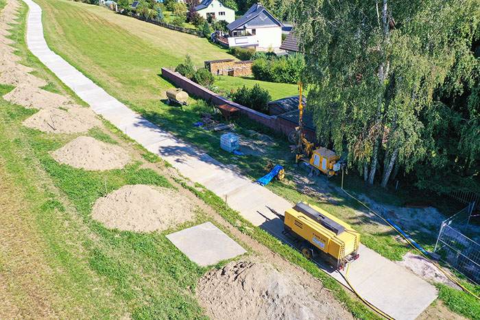 Die übrigen 6 Tiefschürfe wurden durch Bohrungen erkundet. Insgesamt brachten die Beschäftigten 40 Bohrungen mit rund 700 Bohrmetern nieder. In 3 Fällen wurden in den Füllsäulen Resthohlräume angetroffen. Diese konnten mit Zementsuspension beseitigt werden. Die Füllsäulen der Tiefschürfe sind damit dauerhaft stabilisiert.